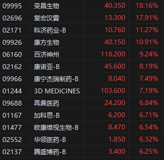 生物科技股集體大漲,榮昌生物暴漲18.16%,復(fù)宏漢霖(13.3, 2.02, 17.91%)漲近18%,科濟藥業(yè)、康方生物(40.15, 3.95, 10.91%)漲約11%,百濟神州(118.2, 10.00, 9.24%)、康諾亞、加科思、康寧杰瑞等跟漲。消息面上,國家醫(yī)保局就《談判藥品續(xù)約規(guī)則》及《非獨家藥品競價規(guī)則》公開征求意見。其中,《談判藥品續(xù)約規(guī)則》提出,滿足以下條件之一的藥品,可以納入常規(guī)目錄管理:非獨家藥品;2019年目錄內(nèi)談判藥品,連續(xù)兩個協(xié)議周期均未調(diào)整支付標準和支付范圍的獨家藥品;談判進入目錄且連續(xù)納入目錄“協(xié)議期內(nèi)談判藥品部分”超過8年的藥品?!斗仟毤宜幤犯們r規(guī)則》的條件為:經(jīng)專家評審,建議新增納入醫(yī)保藥品目錄的非獨家藥品。國家組織藥品集中帶量采購中選藥品和政府定價藥品除外。