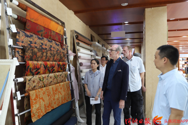 俞博生大使(右三)參觀嘉聯(lián)絲綢公司