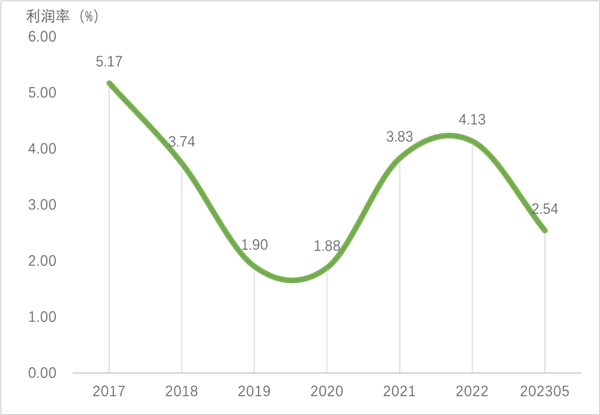 2018-2023年·規(guī)模以上毛紡織及染整企業(yè)平均利潤率變化情況