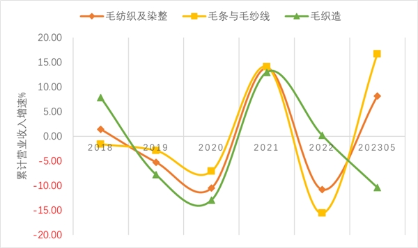 1、毛條毛紗線部門規(guī)模增速好于毛織造部門