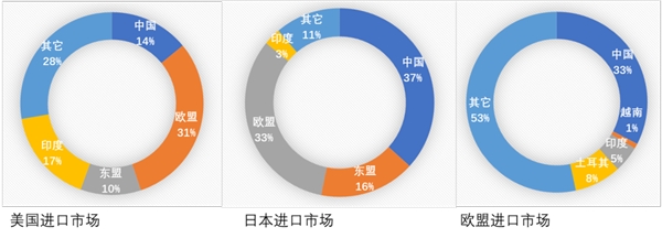 2023年美國、日本及歐盟進(jìn)口份額情況