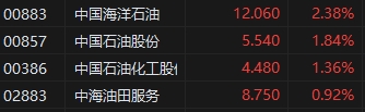 石油股全線拉升,中國海洋石油漲約2.38%,中國石油(5.54, 0.10, 1.84%)漲1.84%,中國石化漲1.36%。消息面上,美國WTI原油期貨周二收高逾2.5%,創(chuàng)10周以來新高。另外,中央深改委指出,進一步深化石油天然氣市場體系改革,加強產(chǎn)供儲銷體系建設(shè)。