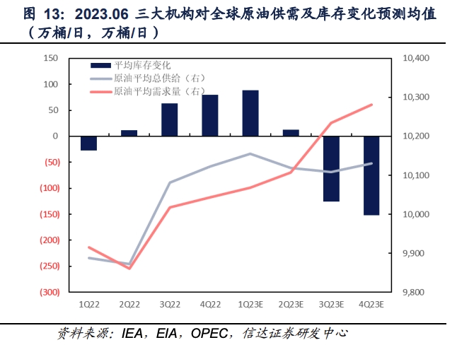 此外,信達證券能源行業(yè)分析師左前明7月11日的報告顯示,國際能源機構(gòu)(IEA)、美國能源署(EIA)及石油輸出國組織(OPEC)三大機構(gòu)都在6月報告中上調(diào)了2023年全球石油需求預測。