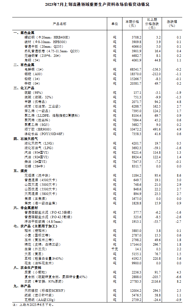2023年7月上旬流通領(lǐng)域重要生產(chǎn)資料市場價格變動情況