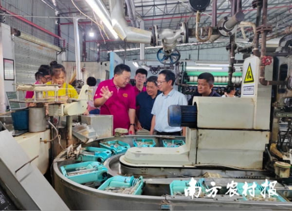 儀式結(jié)束后,劉吉平團(tuán)隊(duì)參觀萬贏繭絲綢有限公司生產(chǎn)車間,了解企業(yè)生產(chǎn)經(jīng)營狀況,并給企業(yè)生產(chǎn)提供技術(shù)指導(dǎo)。