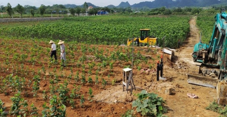2023年6月德勝上坪“水肥一體化示范項目”施工現(xiàn)場。(區(qū)桑蠶循環(huán)經(jīng)濟發(fā)展中心 供圖)