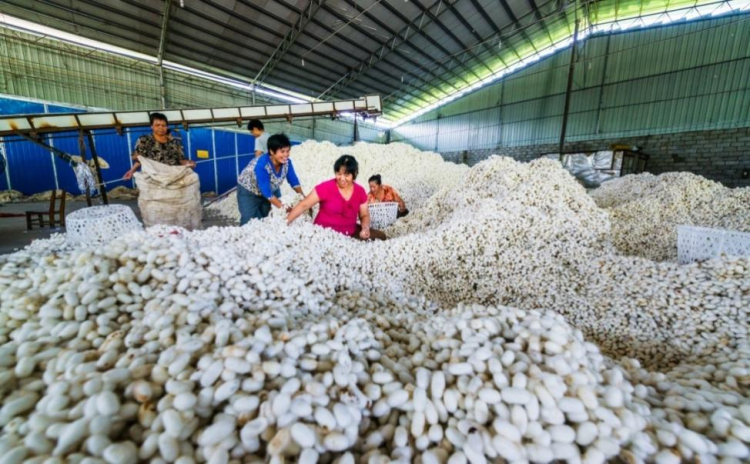 (二)絲綢加工方面。深入企業(yè)了解生產(chǎn)加工情況及銷售渠道并引導企業(yè)做好原料收儲工作。根據(jù)白廠絲行情推進企業(yè)加工產(chǎn)能,確保企業(yè)全年盈利創(chuàng)收。1-5月,全區(qū)擁有繭絲綢加工企業(yè)20家,其中規(guī)上企業(yè)16家,繅絲企業(yè)14家,白廠絲產(chǎn)量1530.05噸;絲綢企業(yè)2家,坯綢產(chǎn)量185.19萬米,絲綢企業(yè)總產(chǎn)值9.13億元;從事電商的絲綢企業(yè)15家,倉儲交易平臺企業(yè)2家,電商渠道銷售繭絲產(chǎn)品3.1億元,平臺年交易額7.5億元;擁有出口資質企業(yè)4家,目前出口額3000萬元,蠶蛹出口額4500萬元。全產(chǎn)業(yè)鏈及貿(mào)易出口總額達7500萬元。