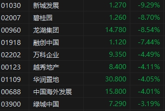 港股內(nèi)房股及物管股全天高開低走,新城發(fā)展(1.27, -0.13, -9.29%)、碧桂園領(lǐng)跌。摩根大通發(fā)表研究報(bào)告指,國務(wù)院近日審議通過《關(guān)于在超大特大城市積極穩(wěn)步推進(jìn)城中村改造的指導(dǎo)意見》,對此未感到過分興奮,指出現(xiàn)階段政策未夠具體,并沒有提及現(xiàn)金補(bǔ)償、規(guī)?;蛸Y金支持等實(shí)施細(xì)節(jié),考慮到不少內(nèi)地城市已積極重新開發(fā)城中村,認(rèn)為今次出臺(tái)并非新政策,或未能緩解投資者對民營房企的流動(dòng)性擔(dān)憂。