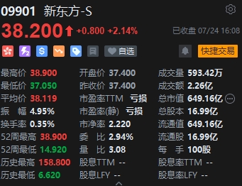 新東方-S(38.2, 0.80, 2.14%)延續(xù)此前強(qiáng)勢行情,盤中一度漲近4%,創(chuàng)下自2021年8月以來的新高。截至收盤漲2.14%,股價(jià)報(bào)38.2港元,消息面上,7月21日,新東方發(fā)布題為《再創(chuàng)業(yè)!新東方文旅!》的文章,官宣再度開拓創(chuàng)業(yè)方向,進(jìn)軍文旅產(chǎn)業(yè)服務(wù)中老年人群。自此,包括東方甄選(31.15, -0.85, -2.66%)在內(nèi),新東方將在教育、生活、旅游三大業(yè)務(wù)領(lǐng)域?yàn)槭鼙娞峁┓?wù),業(yè)務(wù)結(jié)構(gòu)進(jìn)一步多元化。