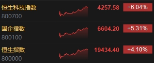 7月25日消息,政治局會(huì)議罕見(jiàn)提及“活躍資本市場(chǎng)”,港股今日應(yīng)聲大漲。截至收盤,恒生指數(shù)(19434.4, 766.25, 4.11%)漲4.1%飆漲766點(diǎn),報(bào)19434.4點(diǎn),恒生科技指數(shù)(4257.58, 242.50, 6.04%)漲6.04%,國(guó)企指數(shù)漲5.31%。盤面上,隔夜美股中概股走強(qiáng),帶動(dòng)科技股集體上行,百度、快手漲超8%、京東、美團(tuán)漲超7%,阿里巴巴、騰訊漲超6%,網(wǎng)易、小米皆有漲幅,中央政治局重新定調(diào)樓市,內(nèi)房股與物管股攜手大幅拉升,龍湖集團(tuán)(18.56, 3.78, 25.57%)、碧桂園(1.49, 0.23, 18.25%)服務(wù)漲超25%表現(xiàn)最佳,政治局會(huì)議強(qiáng)調(diào)擴(kuò)大內(nèi)需,餐飲股、體育用品、家電股等皆表現(xiàn)強(qiáng)勢(shì),汽車股大漲,蔚小理集體拉升,大金融板塊全線走高,招商銀行(36, 3.45, 10.60%)大漲超10%;電力板塊逆勢(shì)下跌,華能國(guó)際電力跌超5%,股東雷根集團(tuán)深陷操縱股價(jià)爭(zhēng)端,信懇智能(2.5, -12.96, -83.83%)暴跌近84%。