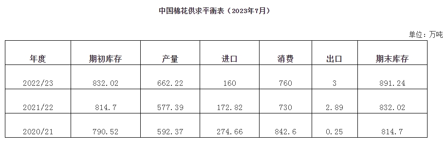 7月18日,有關(guān)部門發(fā)布公告,根據(jù)國家相關(guān)部門要求,為更好滿足棉紡企業(yè)用棉需求,近期組織銷售部分中央儲備棉。時間:2023年7月下旬開始,每個國家法定工作日掛牌銷售;每日掛牌銷售數(shù)量根據(jù)市場形勢等安排;掛牌銷售底價隨行就市動態(tài)確定,原則上與國內(nèi)外棉花現(xiàn)貨價格掛鉤聯(lián)動,由國內(nèi)市場棉花現(xiàn)貨價格指數(shù)和國際市場棉花現(xiàn)貨價格指數(shù)各按50%的權(quán)重計算確定,每周調(diào)整一次。
