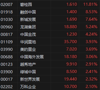 房地產股多數強勢,碧桂園大漲逾11%。中共中央政治局會議日前指出,要切實防范化解重點領域風險,適應我國房地產市場供求關系發(fā)生重大變化的新形勢,適時調整優(yōu)化房地產政策,因城施策用好政策工具箱,更好滿足居民剛性和改善性住房需求,促進房地產市場平穩(wěn)健康發(fā)展。