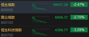 8月2日消息,港股三大指數(shù)集體下挫,截至收盤,恒生指數(shù)(19517.379, -493.74, -2.47%)跌2.47%,報(bào)19517.38點(diǎn)再度跌破2萬點(diǎn),恒生科技指數(shù)(4388.77, -149.33, -3.29%)下跌3.29%,國企指數(shù)跌2.70%。盤面上,核心科技股跌幅明顯,嗶哩嗶哩、百度、快手、美團(tuán)均跌超3%;汽車股表現(xiàn)萎靡,此前因大眾7億美元入股而大漲的小鵬汽車大跌超14%;醫(yī)藥板塊延續(xù)跌勢,醫(yī)藥反腐風(fēng)暴仍在進(jìn)行中;內(nèi)房股多數(shù)走低,物管股強(qiáng)勢,碧桂園(1.46, 0.00, 0.00%)服務(wù)飆漲近18%領(lǐng)銜;水泥股逆勢走高。