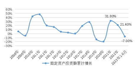 圖4 2008年以來化纖行業(yè)固定資產(chǎn)投資增速變化