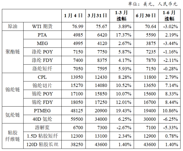 表1 2023年以來化纖主要產(chǎn)品及原料價格變化