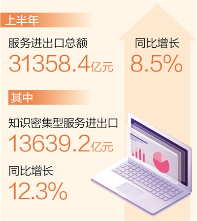 數(shù)據(jù)顯示,上半年知識(shí)密集型服務(wù)進(jìn)出口13639.2億元,同比增長(zhǎng)12.3%,占服務(wù)進(jìn)出口總額的比重達(dá)43.5%,同比提升1.5個(gè)百分點(diǎn)。其中,知識(shí)密集型服務(wù)出口7923.4億元,增長(zhǎng)16%;進(jìn)口5715.8億元,增長(zhǎng)7.5%。高附加值、高技術(shù)含量的知識(shí)密集型服務(wù)貿(mào)易實(shí)現(xiàn)較快增長(zhǎng)、占比提升,說(shuō)明我國(guó)服務(wù)出口競(jìng)爭(zhēng)力明顯增強(qiáng),正在向價(jià)值鏈高端攀升。
