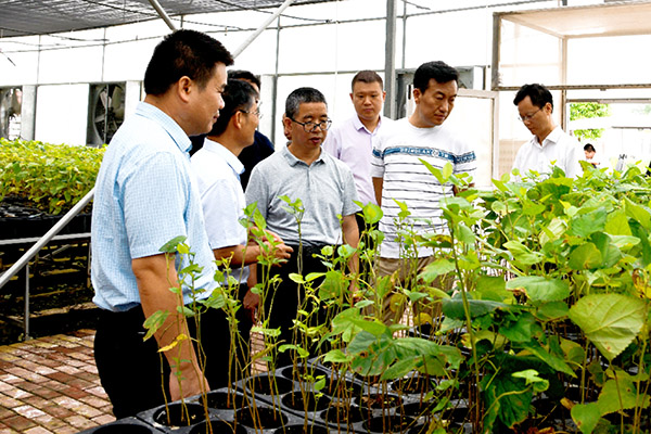 調(diào)研組一行先后參觀考察了桑蠶原種繁育基地、桑樹種質(zhì)資源圃、小蠶自動化飼育車間、桑樹育苗大棚及桑種子制種園,聽取了蠶桑產(chǎn)業(yè)發(fā)展、基地建設(shè)以及種質(zhì)資源保護(hù)和創(chuàng)新等相關(guān)情況匯報??紫槲膶V西蠶桑產(chǎn)業(yè)的發(fā)展表示肯定,并表示以后要多交流經(jīng)驗,有效促進(jìn)“三農(nóng)”工作更好發(fā)展。