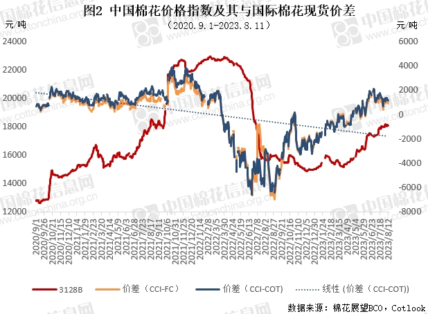 國際方面,產(chǎn)業(yè)層面周內(nèi)天氣擾動對新棉減產(chǎn)的擔(dān)憂進(jìn)一步增強,周五USDA大幅調(diào)減美棉產(chǎn)量預(yù)期,支撐棉價上行,疊加宏觀層面美國就業(yè)、CPI等關(guān)鍵數(shù)據(jù)表現(xiàn)市場符合預(yù)期,通脹持續(xù)顯示緩解跡象,為棉價上行提供動力。從價格方面來看,本周ICE期棉交易重心明顯抬升,ICE2312合約結(jié)算價均價86美分/磅,較上周上漲0.94美分?,F(xiàn)貨方面,Cotlook A指數(shù)周均價95.92美分/磅,較前一周上漲0.1美分/磅。