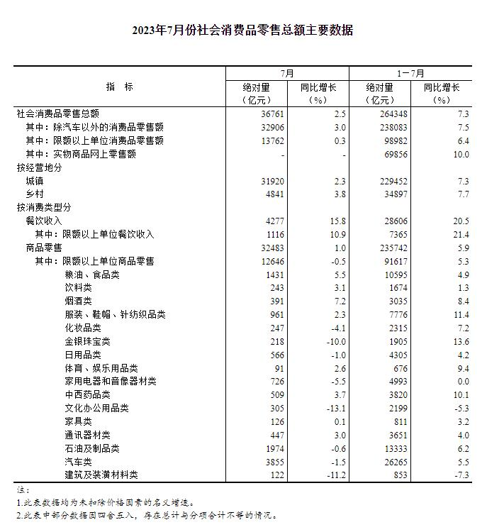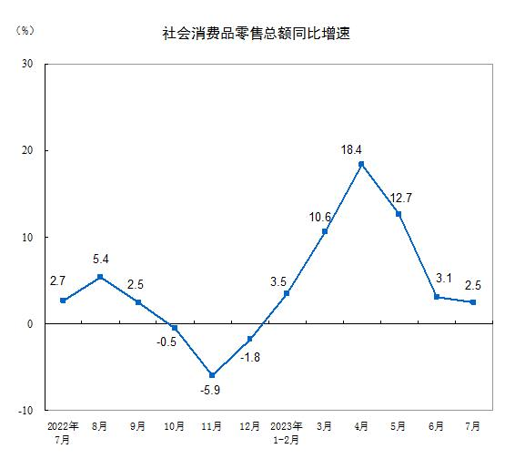 2023年7月份社會消費(fèi)品零售總額增長2.5%