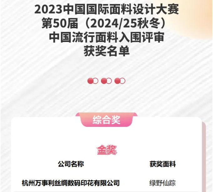 行業(yè)新聞丨萬事利等絲綢企業(yè)在2023中國國際面料設(shè)計大賽中獲得優(yōu)異成績