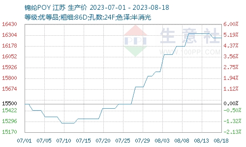 據(jù)生意社商品行情分析系統(tǒng)顯示,本周(2023年8月14日—8月18日),錦綸長(zhǎng)絲價(jià)格高位松動(dòng),小幅下跌。截止2023年8月18日,江蘇地區(qū)錦綸長(zhǎng)絲DTY(優(yōu)等品;70D/24F)報(bào)價(jià)18560元/噸,較上周價(jià)格下跌40元/噸;錦綸POY(優(yōu)等品;86D/24F)報(bào)價(jià)16275元/噸,較上周價(jià)格下跌50元/噸;錦綸FDY(優(yōu)等品:40D/12F)價(jià)格報(bào)19550元/噸,較上周價(jià)格下跌25元/噸。