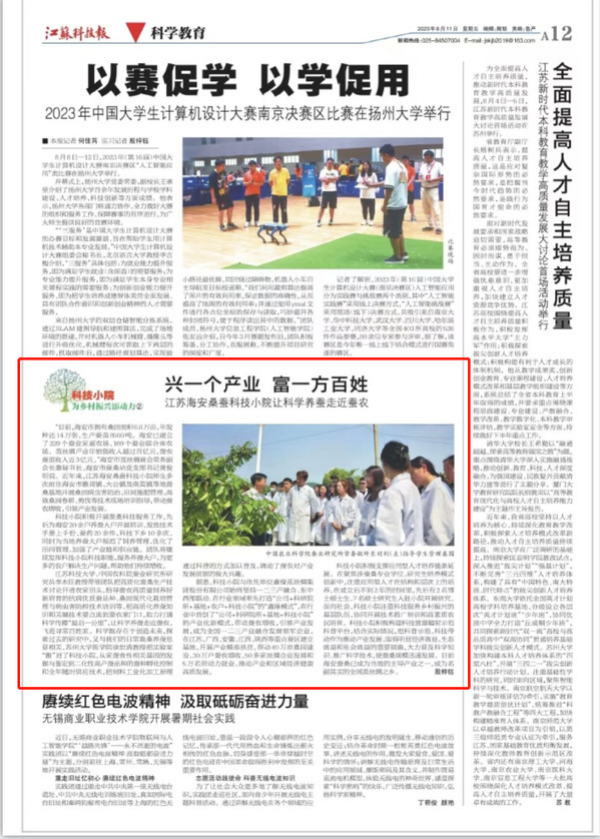 科技小院積極支撐應(yīng)用型人才培養(yǎng)鏈條延展。在聚焦涉蠶桑專業(yè)學(xué)位、研究生培養(yǎng)模式創(chuàng)新中,注重應(yīng)用型人才在結(jié)構(gòu)和層次上的培養(yǎng),在成立后不到2年的時間里,先后有2名博士碩士生、7名碩士研究生入駐小院開展研究。面向社會,科技小院注重科技服務(wù)鄉(xiāng)村振興的基層隊伍,協(xié)同開展技術(shù)推廣培訓(xùn)和高素質(zhì)農(nóng)民培育??萍夹≡悍e極構(gòu)建科技致富輻射示范科普平臺,結(jié)合實際情況,把科普示范、科技帶動作為推動產(chǎn)業(yè)發(fā)展、取得明顯經(jīng)濟效益、生態(tài)效益和社會效益的重要措施,大力普及科學(xué)知識、推廣科學(xué)技術(shù),使蠶桑規(guī)模迅速發(fā)展。目前海安蠶桑已成為當(dāng)?shù)氐闹鲗?dǎo)產(chǎn)業(yè)之一,成為名副其實的全國繭絲綢之鄉(xiāng)。