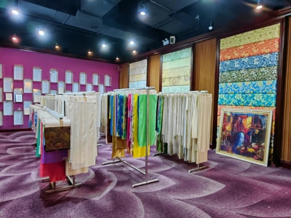 該館不僅展示了精美的絲綢藝術(shù)品,也有面向不同消費(fèi)者的床上用品、服飾、飾品等產(chǎn)品。精美的絲綢產(chǎn)品是從優(yōu)質(zhì)的原料開始的,由絲到綢,要經(jīng)過繅絲、織造、染整等十余道工序才能造就絲綢華美輕盈之美。
