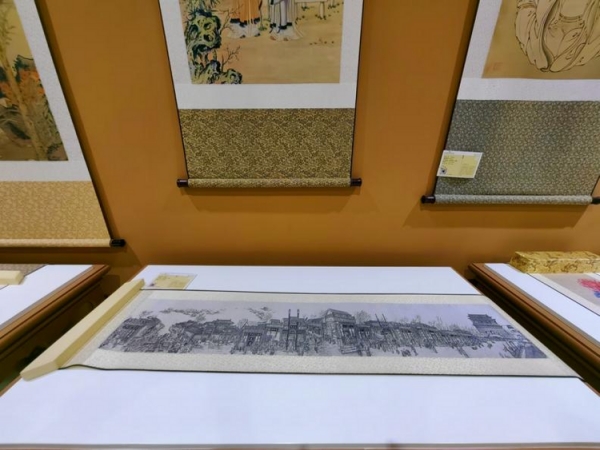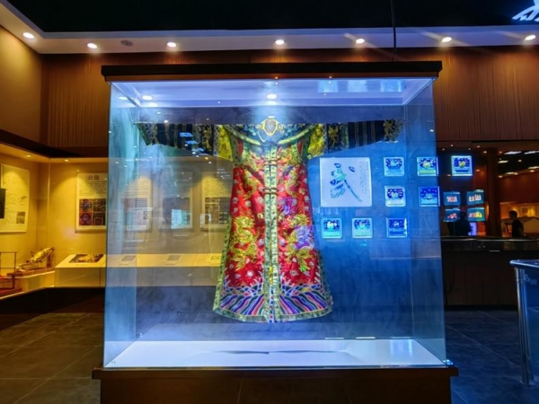 該館中最吸引目光的莫過于歷時(shí)四個(gè)多月制作,一比一還原的嘉慶時(shí)期的龍鳳袍。富麗的色彩、精巧的設(shè)計(jì)、細(xì)膩的紋飾無不體現(xiàn)出人類的智慧和文化傳承,現(xiàn)代技術(shù)的發(fā)展為傳統(tǒng)絲綢工藝注入了新的活力。展館中有一幅運(yùn)用絲綢工藝復(fù)原的中國十大傳世名畫之一的《清明上河圖》,來自中國的現(xiàn)代工匠們用細(xì)膩的絲線作筆,建筑、人物、牲畜、船只等躍然畫卷之上,再現(xiàn)了北宋時(shí)期的風(fēng)土人情。