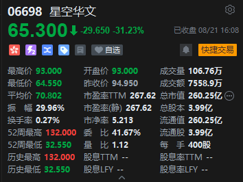 《中國(guó)好聲音》母公司星空華文股價(jià)跌近腰斬,截至收盤,跌超31%。8月20日晚,浙江廣播電視集團(tuán)網(wǎng)站發(fā)布《致<中國(guó)好聲音>觀眾和網(wǎng)友》,稱就《中國(guó)好聲音》引發(fā)的爭(zhēng)議,將調(diào)查核實(shí)。消息發(fā)出后,相關(guān)詞條迅速登上微博熱搜榜第一、第二位。