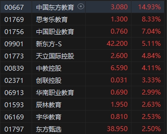 教育板塊漲幅居前,中國東方教育上漲超16%,消息面上,中國東方教育上半年業(yè)績,報告期內(nèi)實現(xiàn)收入19.53億元,同比增長約4%。此外,近日,國內(nèi)首張線上非學(xué)科培訓(xùn)學(xué)校辦學(xué)許可證已經(jīng)下放。民生證券表示,非學(xué)科類校外培訓(xùn)受到國家鼓勵,定位于學(xué)校教育的有益補充。