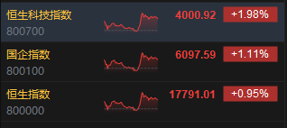 8月22日消息,今日港股三大指數(shù)早間高開低走,午后探底回升翻紅,截至收盤,恒生指數(shù)(17791.01, 167.72, 0.95%)漲0.95%,報17791.01點,恒生科技指數(shù)(4000.92, 77.76, 1.98%)漲1.98%,國企指數(shù)漲1.11%。盤面上,科網(wǎng)股集體走高,網(wǎng)易漲超2%,阿里、京東、快手、美團(tuán)漲近2%;造車新勢力漲勢活躍,小鵬汽車上漲5%;中資券商股大幅上漲,中金漲超6%領(lǐng)銜;教育板塊漲幅居前,中國東方教育(3.08, 0.40, 14.93%)上漲超14%,東方甄選(38.95, 0.95, 2.50%)漲2.5%;蘋果概念、電影、黃金股等漲幅較大;內(nèi)房股、物管股走強,新城發(fā)展(1.31, 0.06, 4.80%)漲近5%。