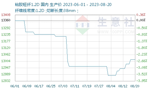 據(jù)生意社商品行情分析系統(tǒng)顯示,上周(2023年8月14—20日),粘膠短纖市場呈現(xiàn)小幅走強(qiáng)態(tài)勢,價(jià)格小幅提升,截止8月20日,1.2D*38mm粘膠短纖國內(nèi)地區(qū)出廠報(bào)價(jià)為13020元/噸,較前期上漲80元/噸,周漲幅0.62%。