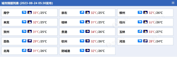 廣西各城市天氣預報