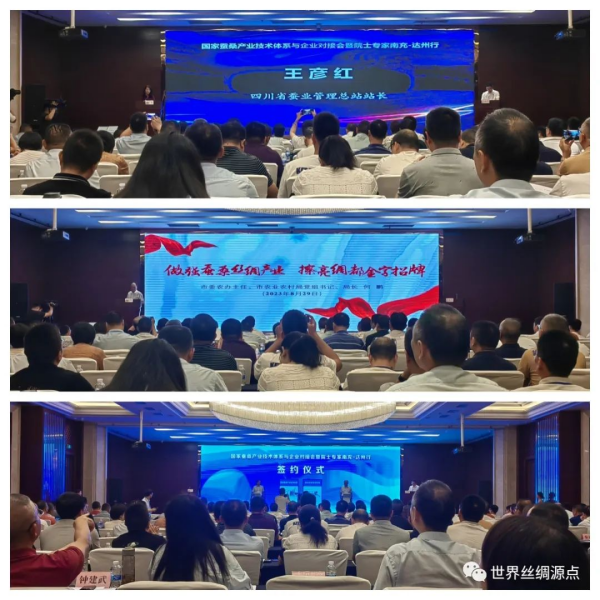 開(kāi)幕式上,四川省蠶業(yè)管理總站站長(zhǎng)王彥紅出席并致辭,南充市農(nóng)業(yè)農(nóng)村局局長(zhǎng)何鵬作南充蠶桑絲綢產(chǎn)業(yè)發(fā)展推薦,國(guó)家蠶桑產(chǎn)業(yè)技術(shù)體系分別與南充、達(dá)州簽署了戰(zhàn)略合作協(xié)議。
