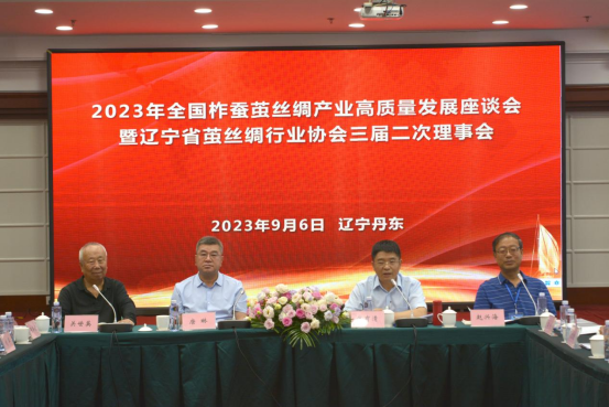 2023年9月6日,全國柞蠶繭絲綢高質(zhì)量發(fā)展座談會暨遼寧繭絲綢協(xié)會三屆二次理事會在丹東召開。中國絲綢協(xié)會會長唐琳、中國絲綢協(xié)會黨支部書記、監(jiān)事長錢有清等行業(yè)領(lǐng)導以及來自遼寧、吉林、黑龍江、 河南、江蘇、廣西、重慶、北京等地的50多名代表參加了會議。