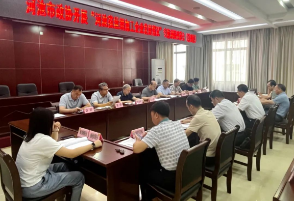 近日,廣西河池市政協(xié)副主席黃大東率調(diào)研組到宜州區(qū)開展“河池繭絲綢加工企業(yè)發(fā)展情況”課題調(diào)研活動。
