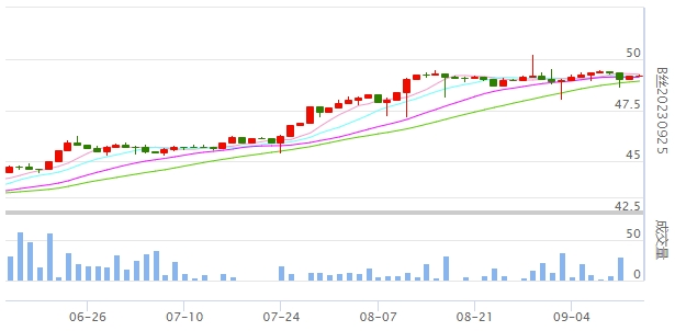 今日(2023年09月13日,周三)中國繭絲綢交易市場生絲指數(shù)上漲0.03%收于4908.27點。B絲(商檢4A級生絲):230925合約上漲0.03萬元報收于49.20萬元;240325合約上漲0.06萬元報收于49.32萬元;240925合約上漲0.06萬元報收于48.24萬元。