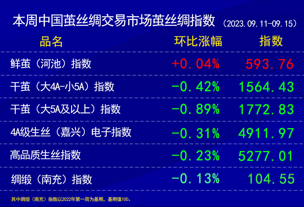 本周繭絲綢各指數(shù)多微綠(20230915)