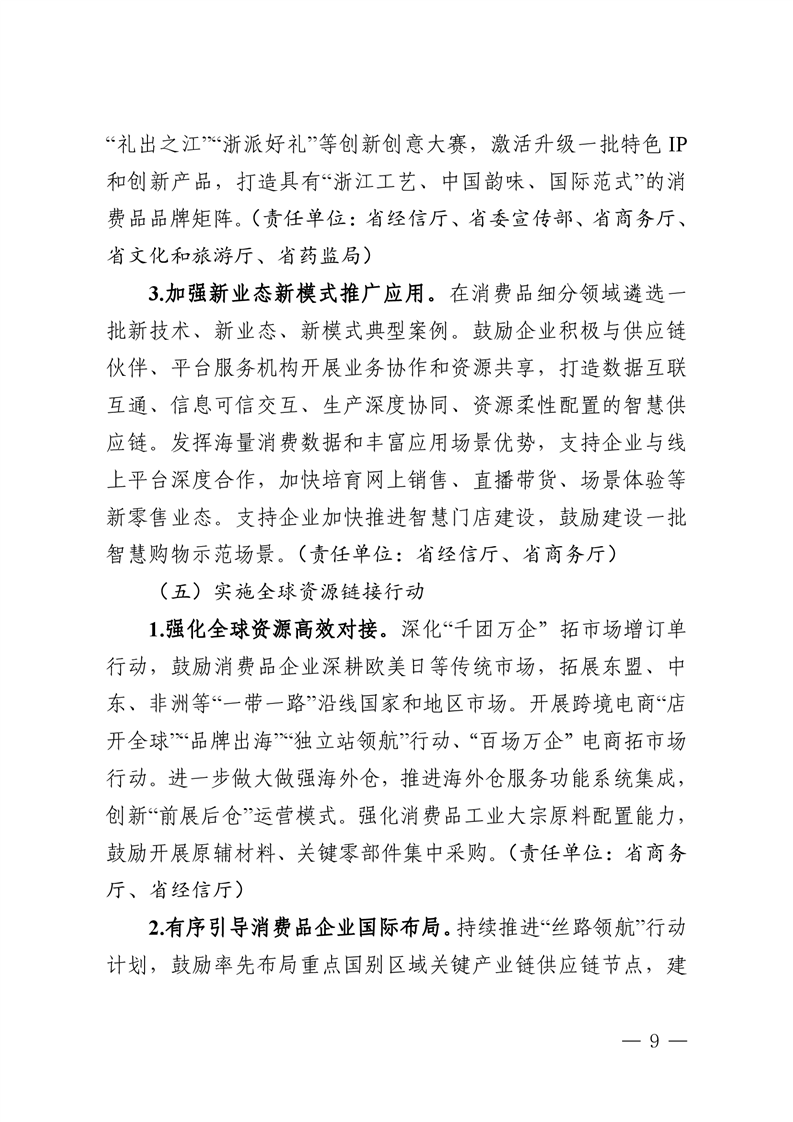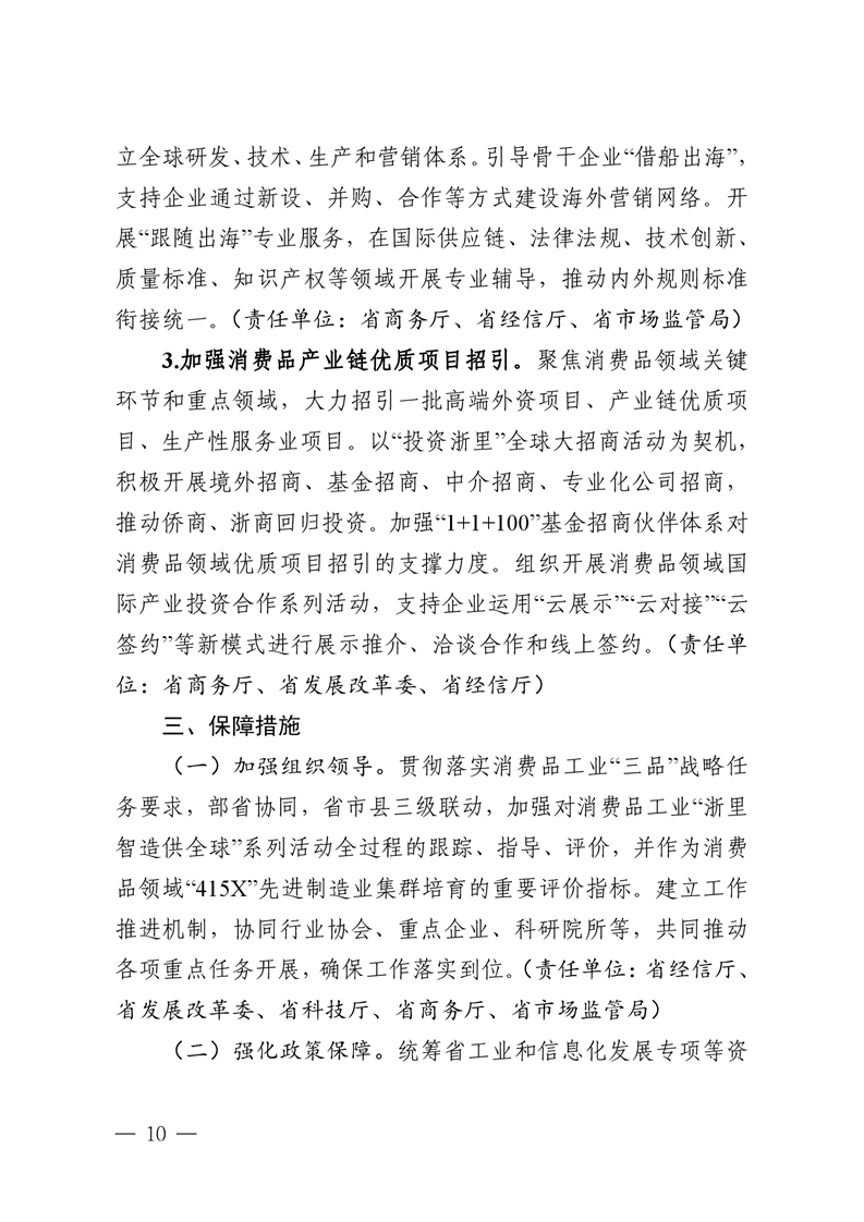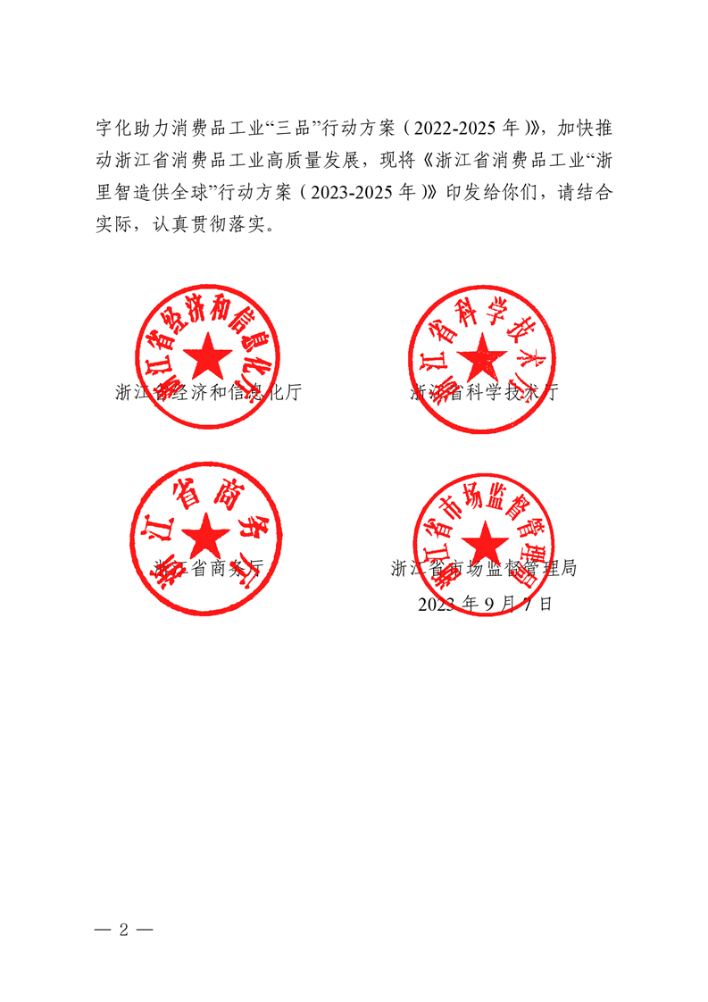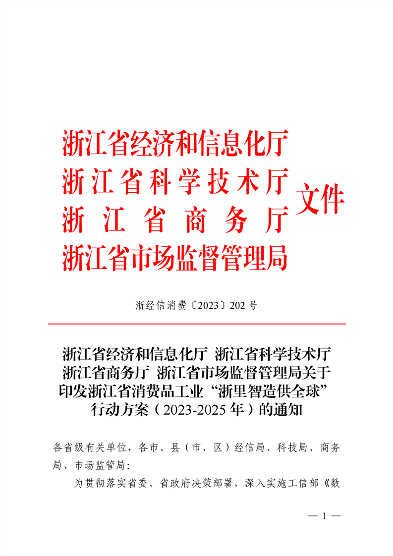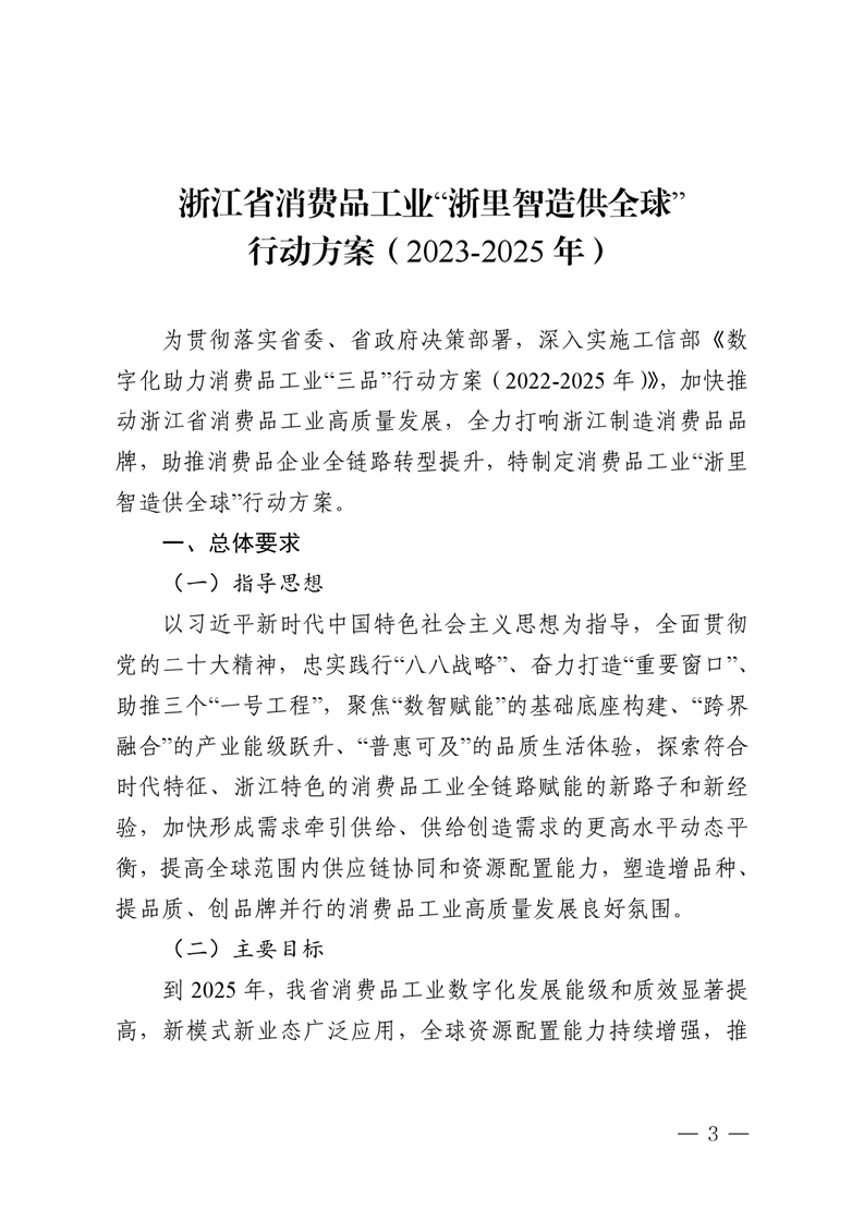 浙江省消費(fèi)品工業(yè)“浙里智造供全球” 行動方案(2023-2025 年)