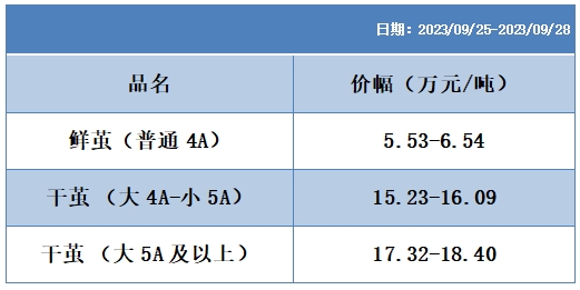 根據(jù)本周蠶繭報(bào)價(jià)按照指數(shù)方案形成的基準(zhǔn)品價(jià)格區(qū)間