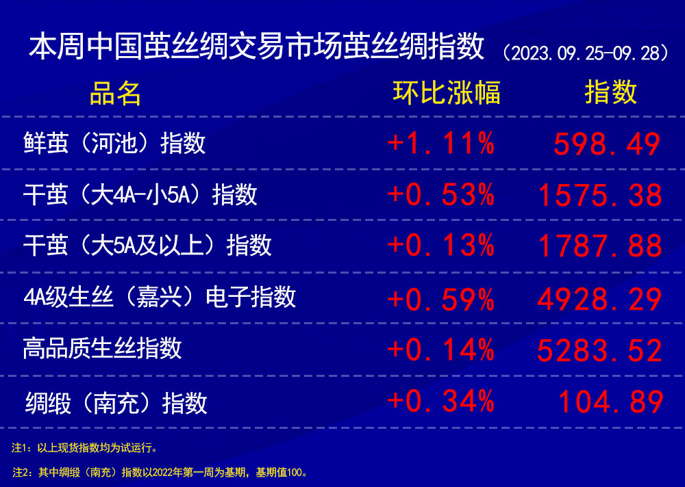 本周中國(guó)繭絲綢交易市場(chǎng)繭絲綢指數(shù)