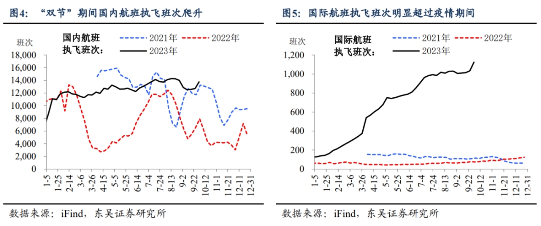 “雙節(jié)”期間重點(diǎn)城市地鐵客運(yùn)量位居近五年來(lái)最高位;全社會(huì)跨區(qū)域人員日均流動(dòng)量也已超過(guò)疫情前水平、比2019年同期日均增長(zhǎng)11.5%。同時(shí),今年假期期間國(guó)內(nèi)外航班量“節(jié)節(jié)攀升”,國(guó)內(nèi)與國(guó)際航班執(zhí)飛班次均明顯超過(guò)去年同期。