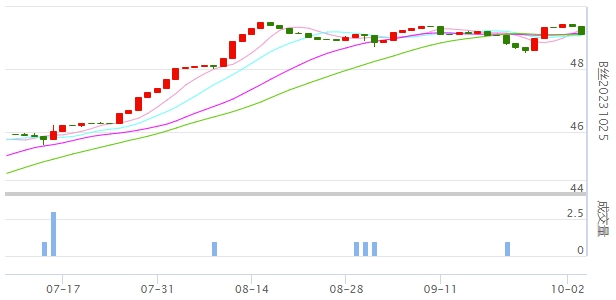 今日(2023年10月08日,周日)中國繭絲綢交易市場生絲指數(shù)下跌0.19%收于4905.17點(diǎn),本周生絲指數(shù)下跌0.47%。B絲(商檢4A級生絲):231025合約下跌0.24萬元報收于49.14萬元;240325合約上漲0.15萬元報收于49.38萬元;240925合約上漲0.09萬元報收于48.27萬元。231025生絲合約日線