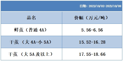 根據(jù)本周蠶繭報價按照指數(shù)方案形成的基準(zhǔn)品價格區(qū)間