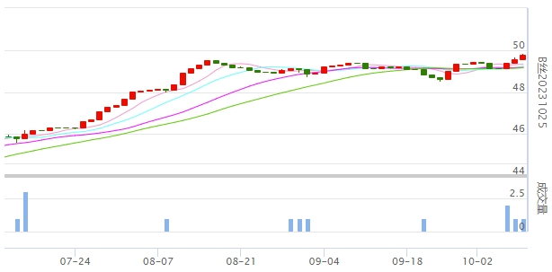 今日(2023年10月12日,周四)中國繭絲綢交易市場生絲指數(shù)上漲0.52%收于4973.22點。B絲(商檢4A級生絲):231025合約上漲0.21萬元報收于49.77萬元;240325合約上漲0.27萬元報收于50.25萬元;240925合約上漲0.15萬元報收于48.69萬元。