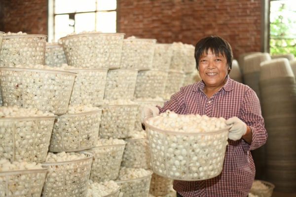 為了調(diào)動(dòng)廣大桑農(nóng)積極性,隆政街道聯(lián)合鑫緣絲綢集團(tuán)制定激勵(lì)措施,對(duì)養(yǎng)蠶大戶予以獎(jiǎng)補(bǔ)并提供加濕機(jī)、切桑機(jī)等設(shè)備;同時(shí)設(shè)立組合獎(jiǎng)項(xiàng),對(duì)高質(zhì)量蠶繭以溢出市場(chǎng)3%—4%的價(jià)格進(jìn)行收購(gòu)?!敖衲?,新豐村累計(jì)發(fā)放早秋蠶種865張。蠶繭大多呈潔白狀,質(zhì)量良好,豐收已成定局。”新豐村黨總支書(shū)記羅進(jìn)表示。