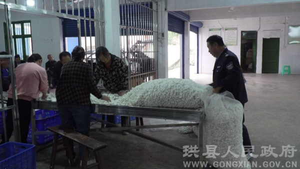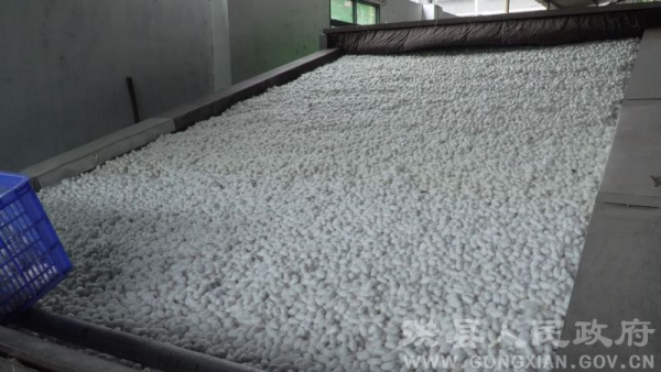 四川省珙縣是國家級蠶桑農業(yè)標準化示范區(qū)、全國優(yōu)質繭基地,全縣根據(jù)不同海拔分7批次養(yǎng)蠶。連日來,各繭站正抓緊今年第6批次蠶繭的收購、烘烤和入庫。