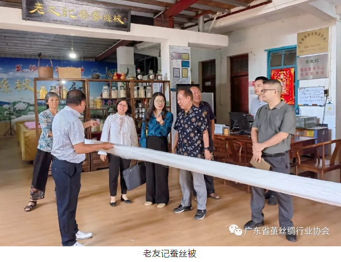 12日下午,調(diào)研組來到云安區(qū)云浮市御華繭絲綢有限公司調(diào)研并召開座談會,協(xié)會秘書長藍(lán)年新主持會議。御華公司玉杰華董事長詳細(xì)匯報現(xiàn)階段企業(yè)的生產(chǎn)、銷售情況。云浮市商務(wù)局市場規(guī)劃管理科參會同志對御華公司積極發(fā)揮聯(lián)農(nóng)帶農(nóng),促進當(dāng)?shù)剞r(nóng)戶增收,為國家創(chuàng)稅增收給予肯定, 針對企業(yè)生產(chǎn)用工難、環(huán)保等問題進行詳細(xì)了解,希望御華公司用好絲綢專項資金,積極開展電子商務(wù)平臺銷售,政府部門和企業(yè)之間加強溝通和對接,從政策上給予企業(yè)支持,助推企業(yè)高質(zhì)量發(fā)展。會后,玉杰華董事長,黃敏容總經(jīng)理,玉鳳明經(jīng)理陪同參觀繅絲車間和蠶桑文化館。