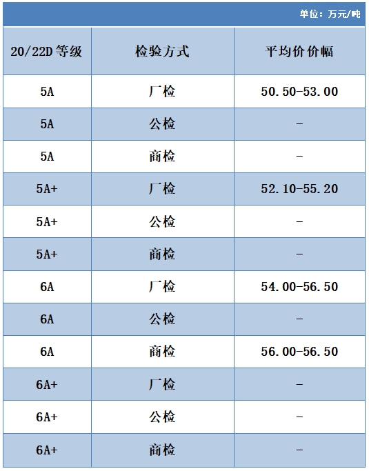 本周高品位生絲協(xié)作單位成交價格區(qū)間
