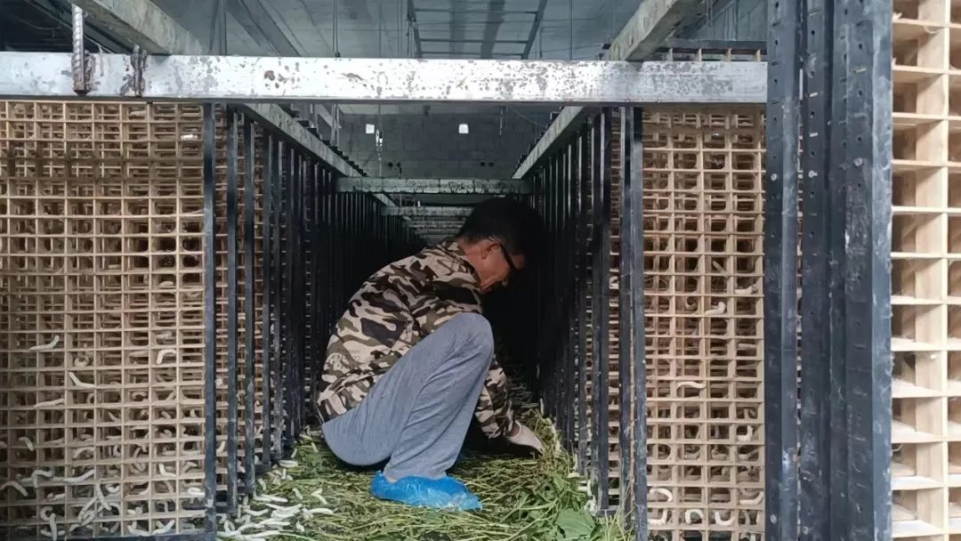 在廣西都安瑤族自治縣永安鎮(zhèn)安樂村干盆屯都安綠銀桑蠶種養(yǎng)專業(yè)合作社的蠶房里,社員正熟練地把桑葉整齊擺放在蠶寶寶身上,白白胖胖的蠶寶寶則津津有味地啃食桑葉。